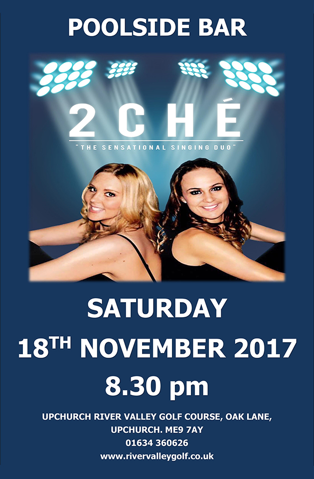 Friday, 13 October 2017 Poolside Bar Music Night with 2 CHÉ at Upchurch River Valley Golf Course Jenny - Upchurch River Valley Golf Course Telephone: 01634 360626 Website: www.rivervalleygolf.co.ukSpace Newer Post Older Post Home